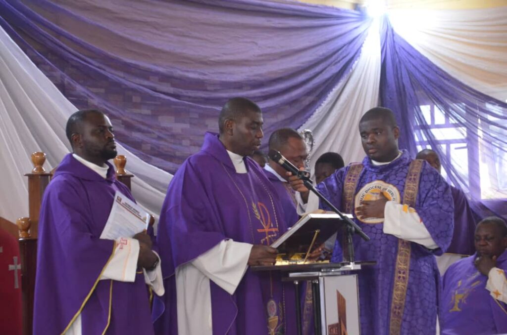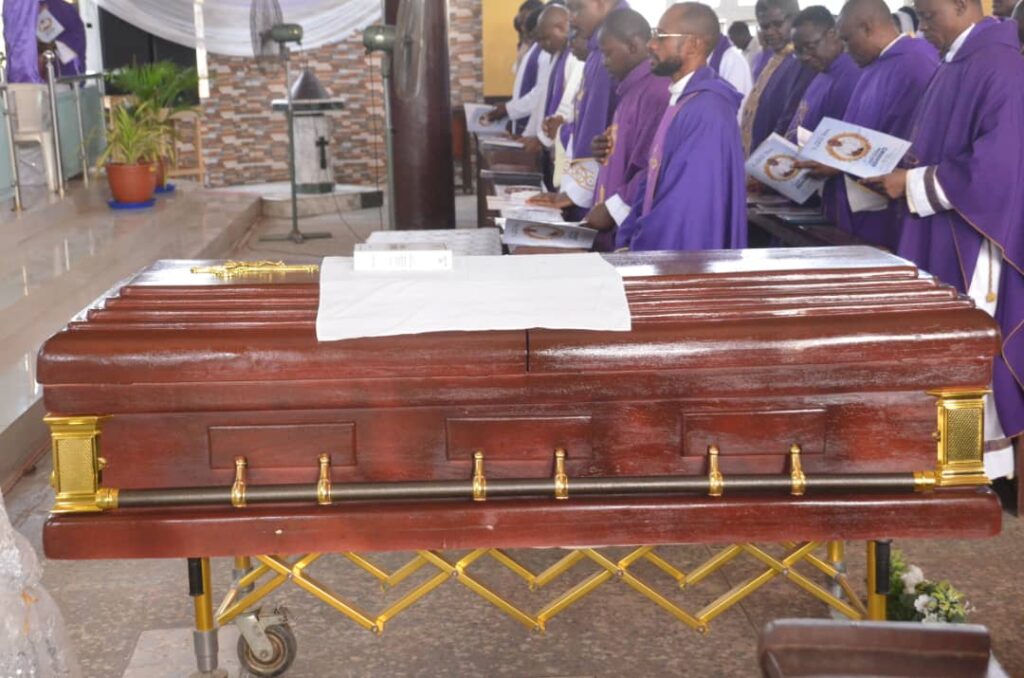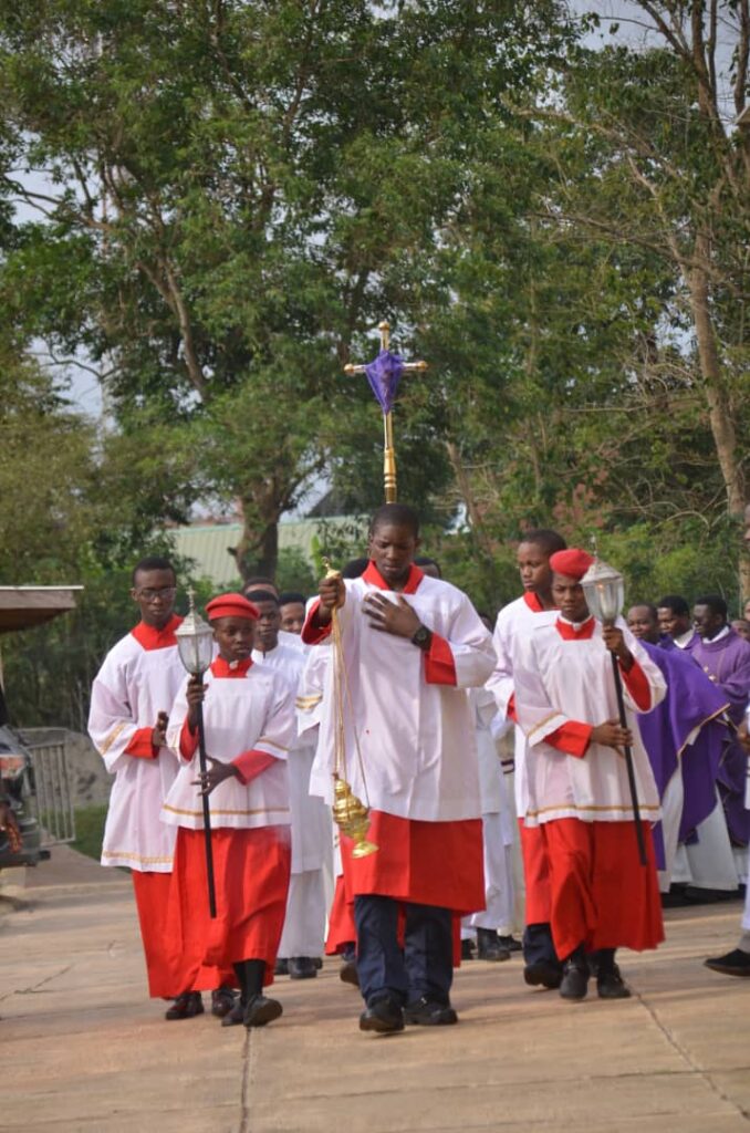 The ceremonies commenced on Monday afternoon as the remains of Fr. Ashinwo were moved from the Babcock University Teaching Hospital morgue to St. Timothy Catholic Church, Degun. The atmosphere was one of deep prayer, beginning with the Divine Mercy at 3:00 PM, followed by the Rosary and the Office of the Dead.