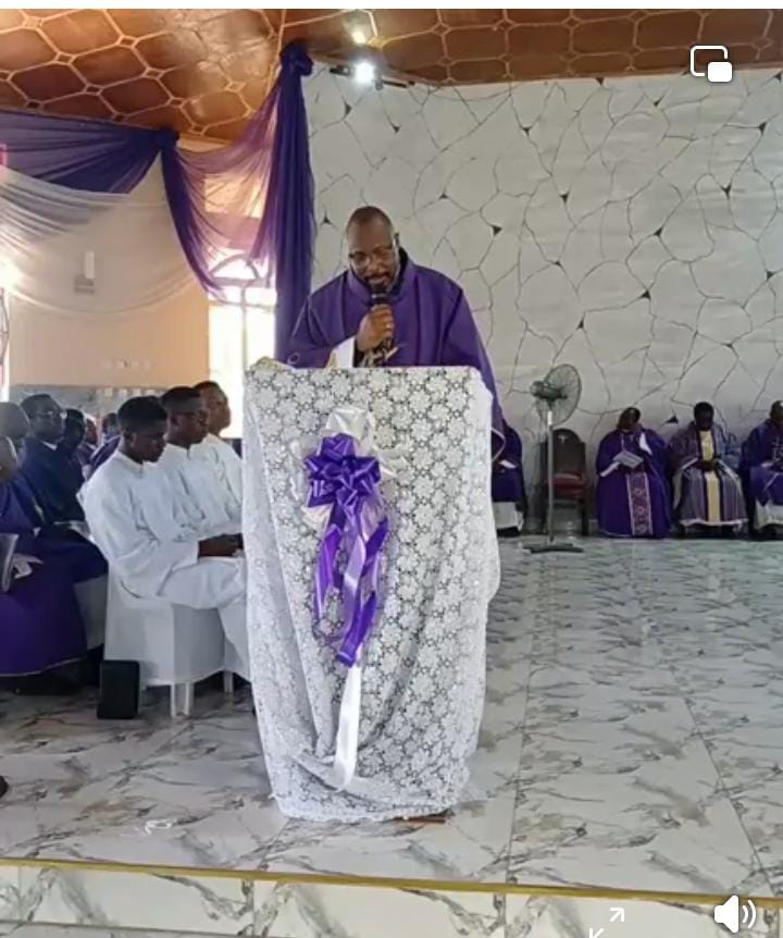 At 5:00 PM, the first Mass of the Christian Wake was celebrated, with the Vicar General, Very Rev. Fr. Patrick Balogun, presiding as the Chief Celebrant. The homilist for the evening, Rev. Fr. Anthony Adetayo, delivered a spiritually charged reflection that shifted the focus from the sorrow of loss to the challenge of living. Moving away from the common rhetorical question of “who is next?”, Fr. Adetayo posed a more piercing inquiry to the congregation: “Who is left?”